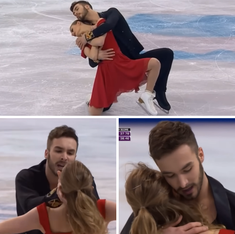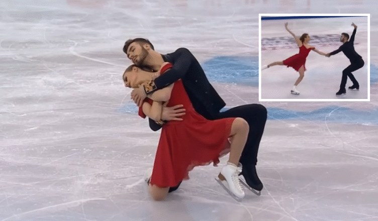 The pair began skating to the center of the rink. Gabriella wore a striking red dress, while Guillaume wore black, creating a visual contrast that complemented the delicate tone of the song. Every step, lift, and transition was carefully designed to match the rhythm and emotion of the music, showing their years of training and innate connection.