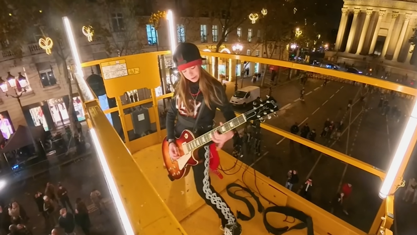 La guitarra eléctrica fue tocada por Olly Pearson, un joven músico verdaderamente talentoso que muchos recuerdan de America’s Got Talent. Incluso a una edad tan temprana, Olly conquistó corazones con su confianza, pasión e increíble habilidad con la guitarra. Verlo actuar nuevamente en las calles de París fue un hermoso recordatorio de ese mismo espíritu alegre.