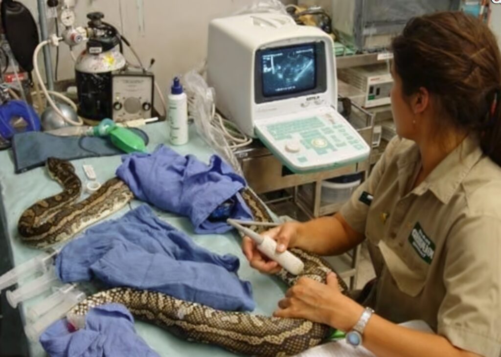 Pero entonces algo cambió. La serpiente dejó de comer repentinamente. Preocupada, la llevó a su veterinario de confianza.