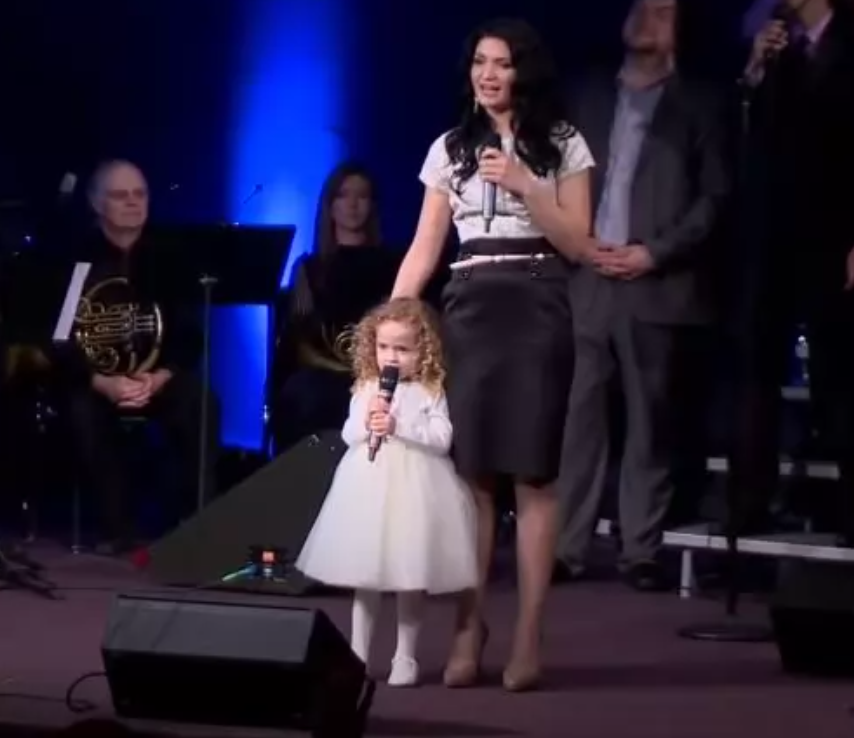 This video shows a 4-year-old girl named Hayley Jones taking the stage of the church she attends to sing “Jesus at the center of it all”.