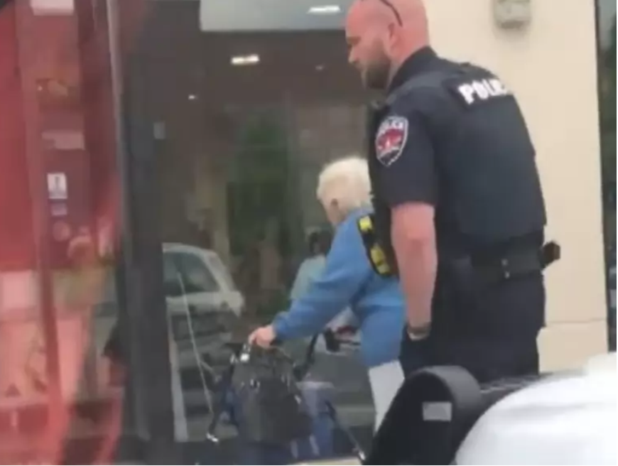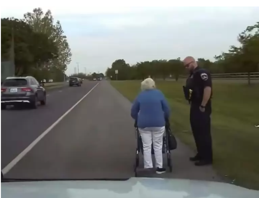 No, Officer Hoffmeister saw the old lady walking along a busy highway and under the sun. To make matters worse, the old lady was trudging using a walker.