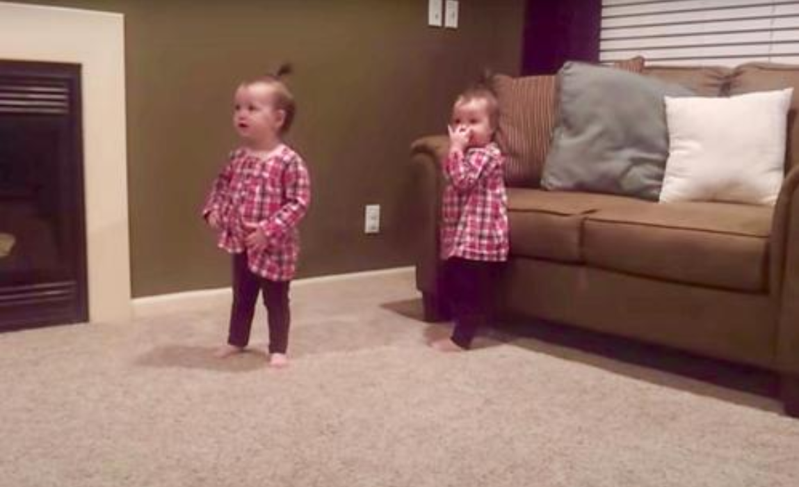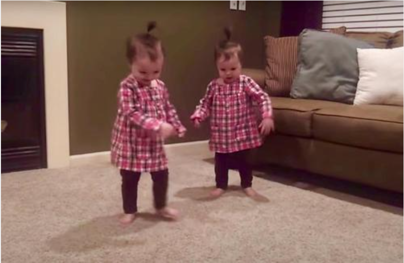 The way-too-cute, caught-on-tape moment of the two 19-month-old, identical twins dancing was posted by youtube user Brovadere who writes: