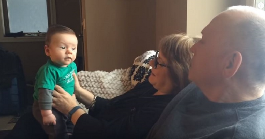 In the video posted below, you’ll see a couple of doting grandparents who really want to hear their little grandson’s first word. They do their best to encourage him to pipe up. Grandma suggests, “Say, Mama. Do you want to?” Just a blank stare and silence. Grandpa suggests that maybe “milk” would be the first word the little boy would want to say. That’s certainly logical, but again, not a peep from the baby.