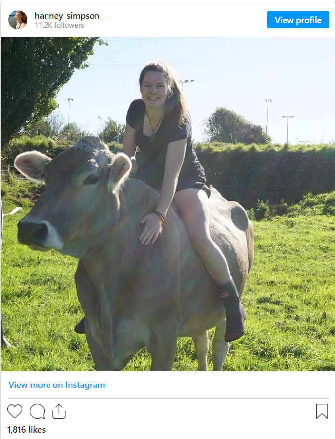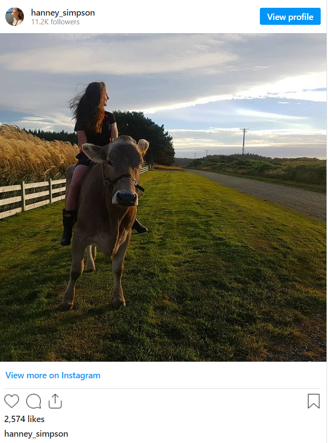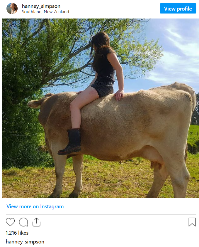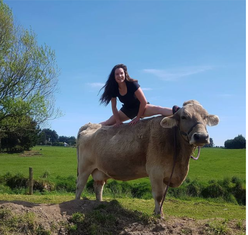 So the farm girl from New Zealand decided to move on to the next best thing – a cow.