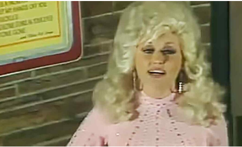 Dolly is dressed in a pink and shimmering dress. She snaps her fingers as she starts to get into the song. Dolly starts singing with great energy and passion.