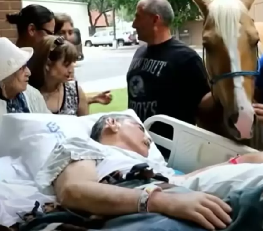 While Roberto was in his bed in the care center, the man was given the chance to meet his horses named Sugar and Ringo. His family brought the horses to the center for him to see for one last time.