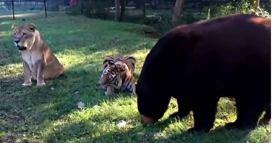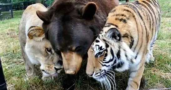 The Noah’s Ark Sanctuary in Georgia is home to a tiger, a bear, and a lion. The three of them were rescued as cubs and have now formed an unlikely friendship with each other.