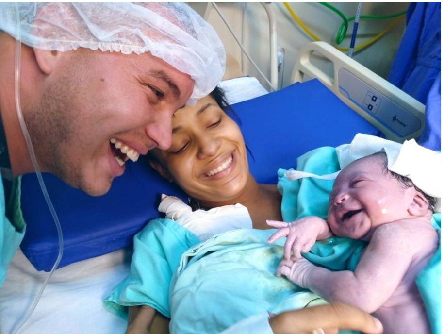 After the birth, Flavio came to talk to his daughter in person. As soon as she heard his voice, she immediately began to smile.