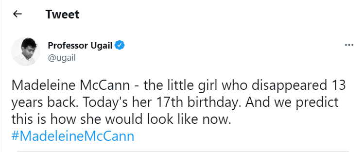 May 12th would mark Madeleineās 17 birthday and Bradford University professor Hassan Ugail created a photo of what could she look like today using advanced AI.