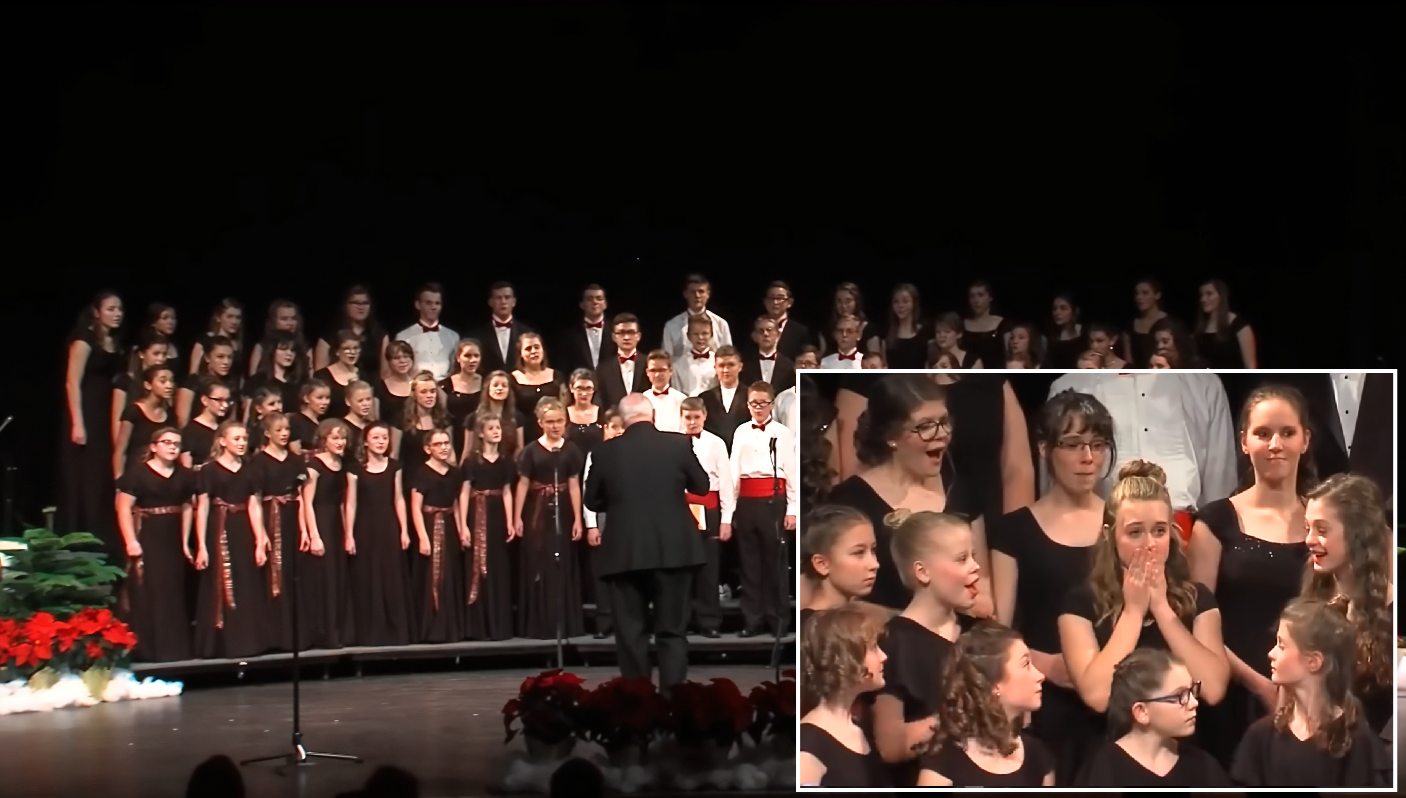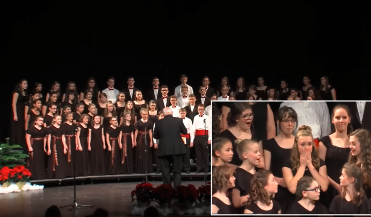 These days a lovely video of the birthday party has been uploaded to the web, in which the girls from one of the choirs showed off their singing skills. But one of the girls didn’t even dream of having the nicest Christmas surprise after her performance!