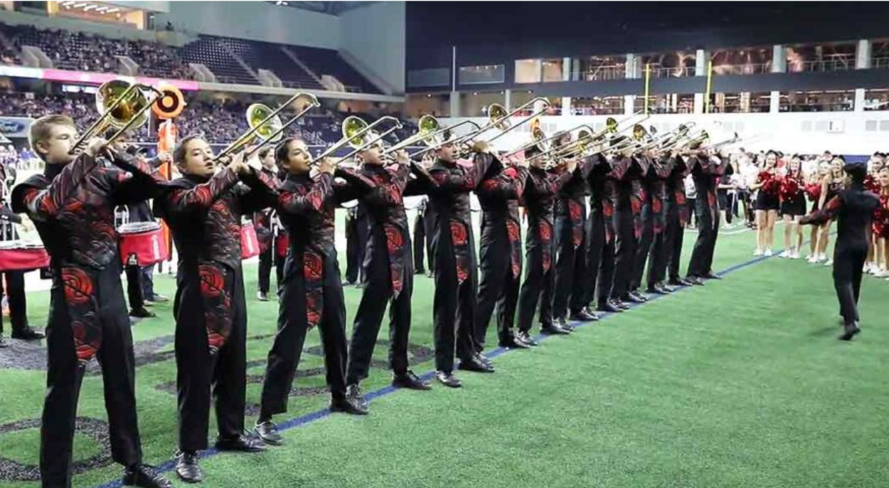 Liberty High School in Frisco, Texas, sent their marching band trombone section out to the field to perform a stunning routine. The trombone is a lengthy instrument that often gets bumped into when you’re in a crowd.