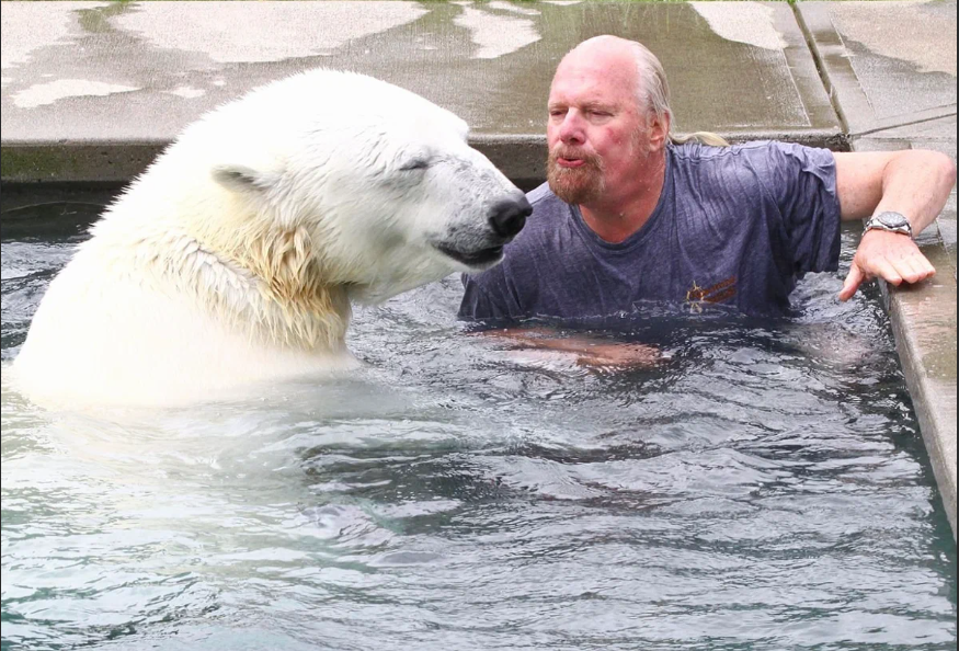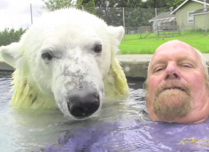 Animals are divided into two groups domestic and wild but sometimes people violate this pattern. A 67-year-old Canadian named Marc Dumas became known all over the world thanks to his original partner. He has been friends for 23 years with an unexpected friend a polar bear and often swims with him in the pool.