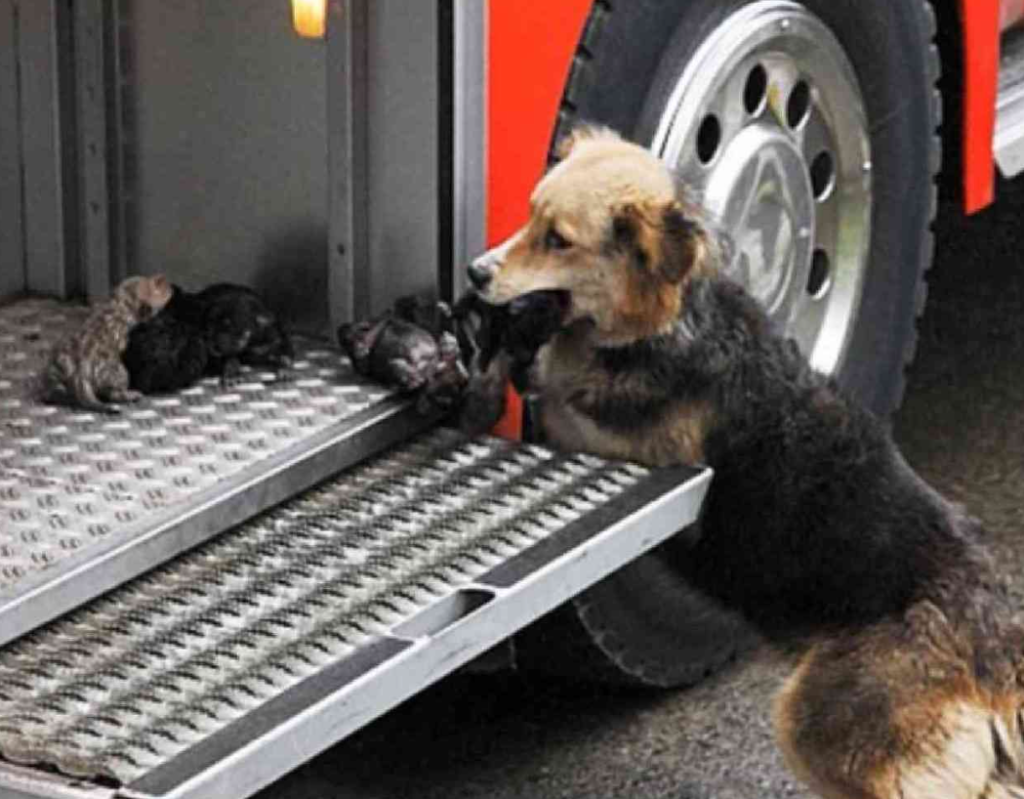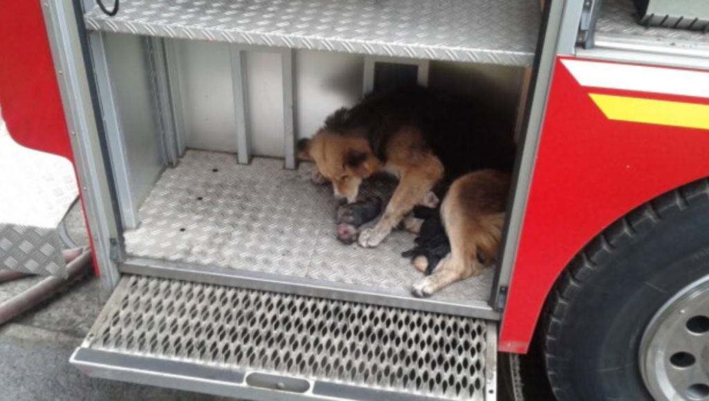 Amanda, the dog, ran this way and that to the house, as she removes her children matured 10 days and put them in the most secure spot she could find – the fire truck.