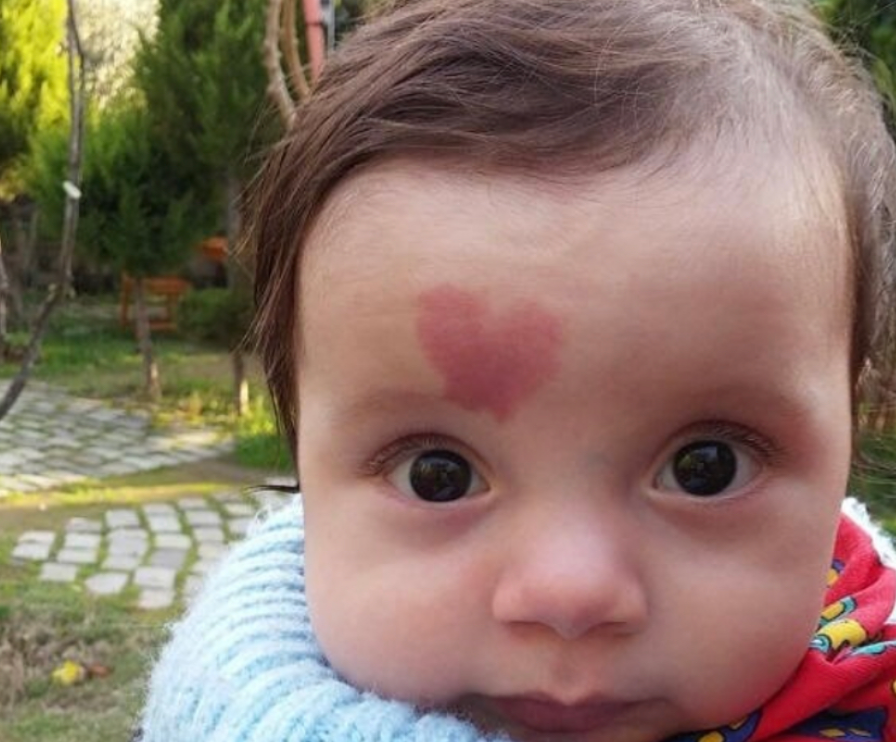 His parents, Murat Engin (thirty years old) and Saida (twenty-eight years old), could not believe their eyes when they saw a heart-shaped birthmark on the forehead of their newborn child.