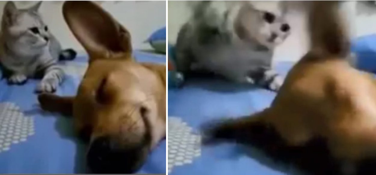 Have you ever had a pet with peculiar habits? Or have you ever witnessed your pet displaying annoyance toward another animal? One pet owner, the proud caregiver of both a dog and a cat, managed to capture an amusing yet endearing interaction between his furry companions on video.