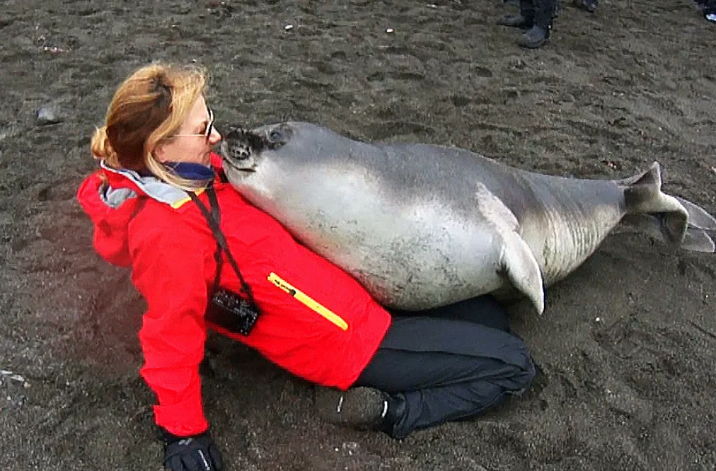 Despite the friendly interaction, Charlene couldn’t reciprocate the hug due to regulations on the Antarctic expedition that prohibited touching seal pups. This left her wondering about the unusually affectionate behavior of the mammal.