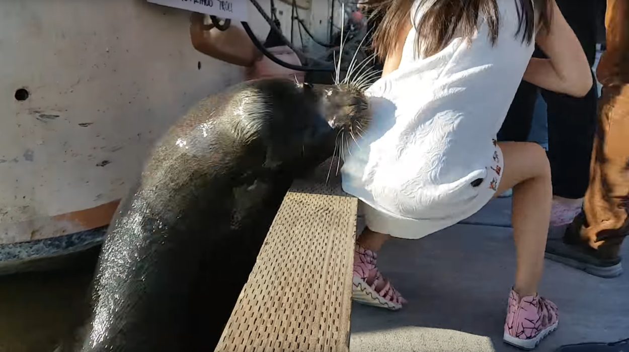 In a surprising turn of events at Steveston Fisherman’s Wharf in Richmond, British Columbia, a seemingly docile sea lion shocked onlookers by grabbing and dragging a girl into the water. The incident, captured on film by Michael Fujiwara, initially began as a calm observation of the sea lion swimming in the harbor.