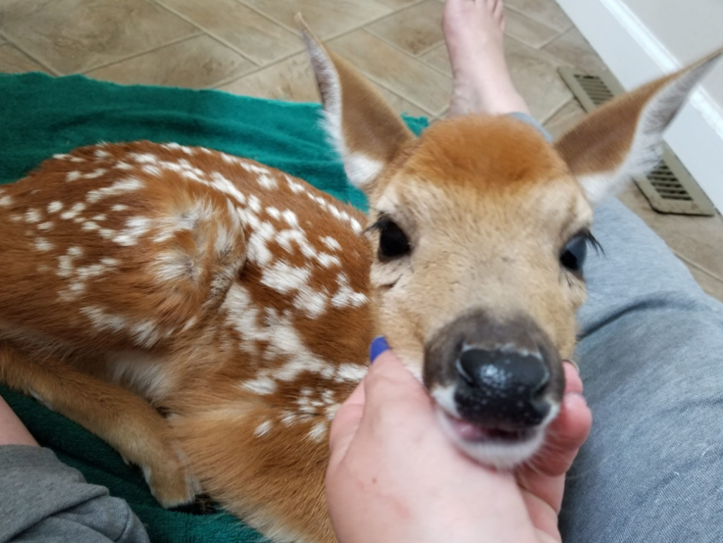 Sharing her delightful experience on Imgur, Amscolie explained, “I raised orphaned wildlife. Recently, the back door of the house was open while a storm was about to hit the area. I did not see the deer anywhere. I went inside, walked towards the main door, and saw them at the living room table. I told them they could sleep at home tonight because it would be cold outside and not fun.”