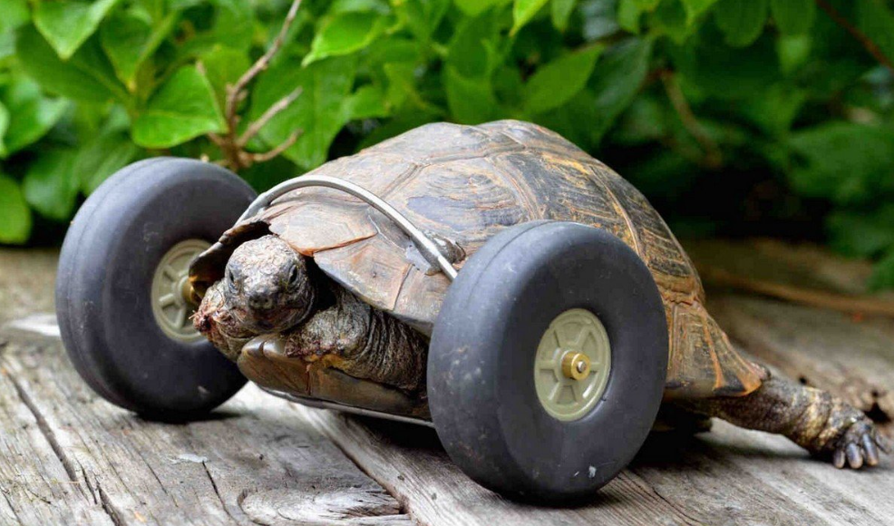 However, hope came in an unexpected form—Dale Ryder, Jude’s 37-year-old son and a mechanical engineer, decided to use his skills to enhance Mrs. T’s mobility. Gluing wheels from a model aircraft onto the tortoise’s shell, Dale turned Mrs. T into a bionic tortoise, making her twice as fast as before.