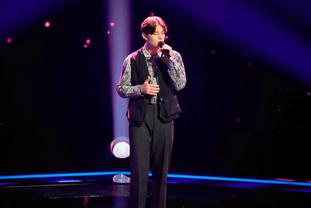 Amidst disbelief, Nial chuckles at the teenager’s remarkable abilities. Before the first verse concludes, Blake hears a soaring note from Ryley, prompting him to spin his chair around, met with enthusiastic applause from the audience.