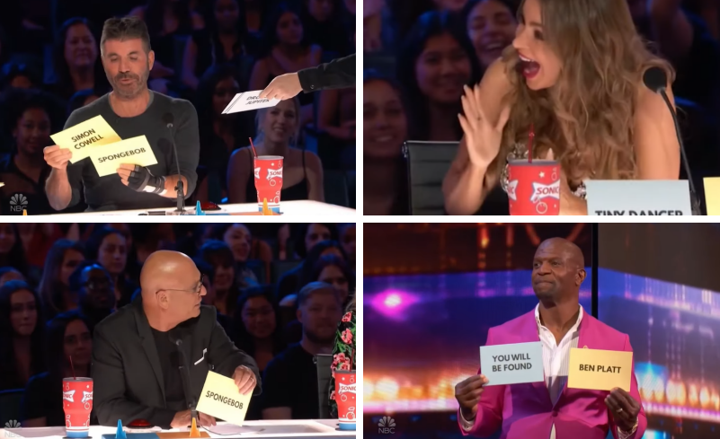 The unique audition setup involved Gabe handing out cards to the judges, each card listing different song and character combinations. With 576 potential mixes, the challenge was set high. Sofia Vergara’s pick was Elton John’s “Tiny Dancer,” but sung in the voice of Kermit the Frog—a request that Gabe executed with astonishing precision.
