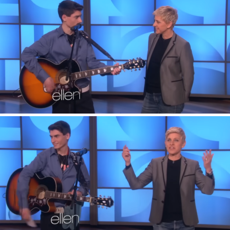 On the show, Ellen introduced David by playing a clip of his performance, leaving the audience in disbelief over the authenticity of his voice. She quipped, “It doesn’t sound real, right? The only way to know for sure if that’s real is to meet him.” David then joined her on stage, guitar in hand, exuding both youthful charm and a hint of shyness. Ellen lightened the mood with playful banter, jokingly asking if he sounded like fellow Canadian singer Celine Dion when he sang her songs, to which David laughed and admitted he did not.