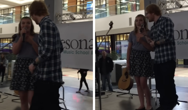 Sydney was performing Ed Sheeran’s hit song, Thinking Out Loud, on a small stage at a Canadian mall. She was singing as part of a fundraiser for the local Humane Society, and everything seemed like an ordinary event. Little did she know, the Grammy-winning artist himself was in the very same mall!