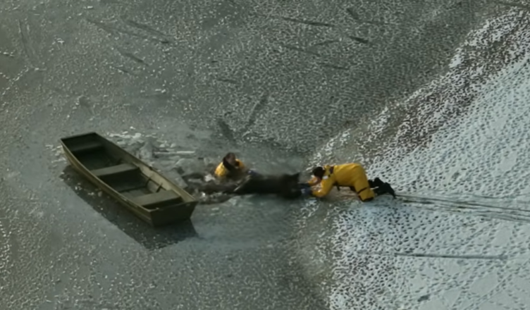 A heart-stopping rescue took place at Lake Waban in Wellesley, Massachusetts, when a man and his dog fell through the thin ice, leaving them trapped in the freezing water.