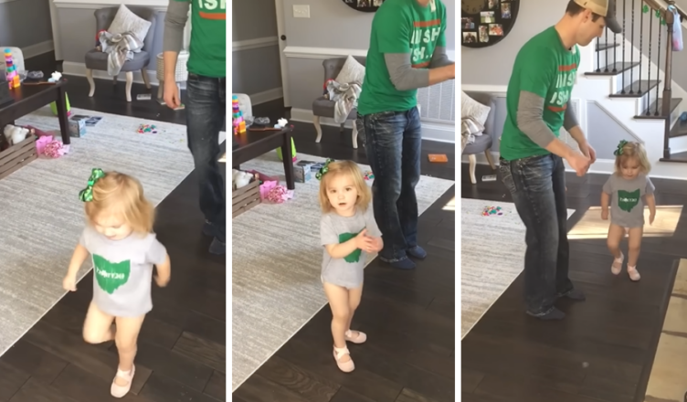 Sometimes, you come across a moment that’s so heartwarming, you just can’t help but watch it again and again. This is definitely one of those moments! Picture this: a tiny little girl, gracefully tapping her feet just like a pro Irish dancer—and she’s teaching her dad to follow her moves!