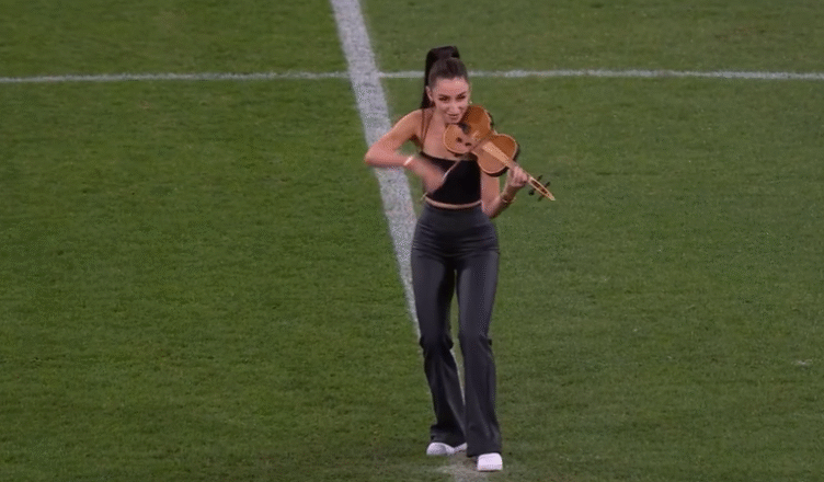 Fans were treated to a powerful rendition of Seven Nation Army performed live on the violin, with Evangeline leading the charge backed by a high-energy band. The unique twist on a stadium anthem created a dramatic and almost cinematic buildup to the match, igniting the atmosphere before a ball had even been kicked.