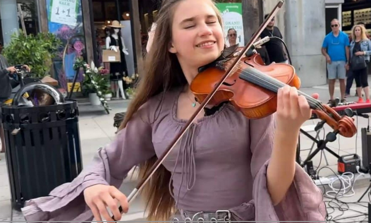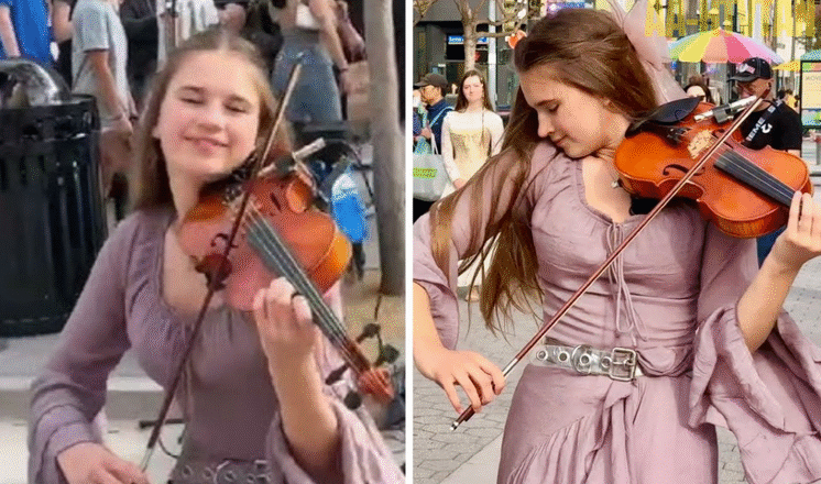 En una esquina cualquiera, bañada por la luz cálida de la tarde, una joven violinista transformó un día ordinario en un momento que quedará grabado en el corazón de quienes lo vivieron. Karolina Protsenko, de tan solo 15 años, volvió a deslumbrar al mundo con una interpretación inolvidable del clásico de John Denver, “Take Me Home, Country Roads”, esta vez con su inseparable violín y una sonrisa que ilumina más que el sol de verano.