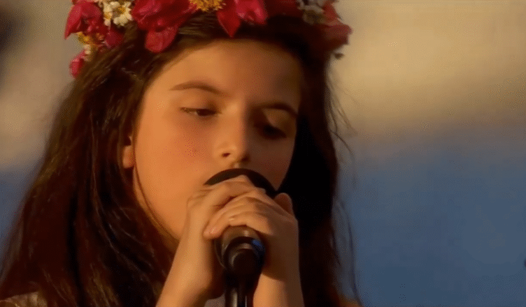 The beauty of the performance wasn’t just in Angelina’s voice, though that alone could stop anyone in their tracks. It was the feeling. The entire scene — the soft light of the sunset, the silent crowd, the girl standing barefoot as if grounded in something greater — felt timeless.