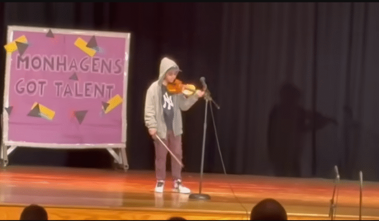 At Monhagen Middle School in Middletown, New York, a quiet young boy stepped onto the stage during a school talent show. Dressed in a simple hoodie, cap, and brown pants, he carried himself with modesty — not the look of someone about to deliver a performance that would reach millions.